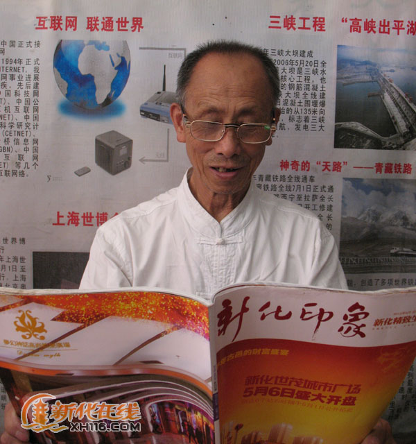 《新化印象》丰富的内容和精美的印刷效果,受到人们的喜爱。7月6日,紫鹊界景区的水车镇老科协秘书长邹沛然,在认真阅读该书。(邱向明摄影报道)