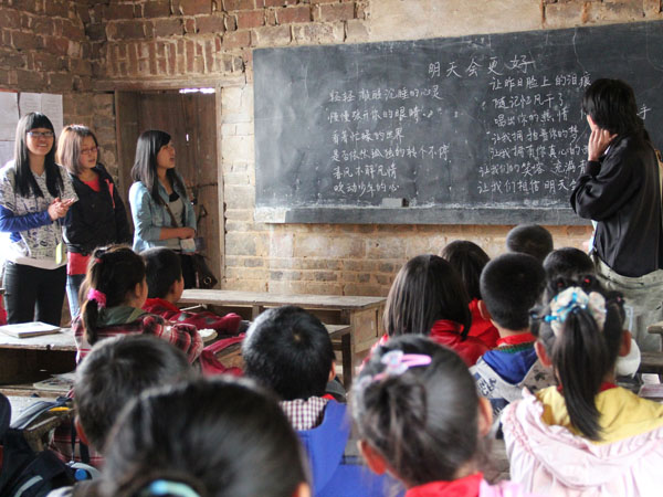 仪式结束后,从华育英才精英俱乐部2000名成员中遴选出来参加此次活动的80名大学生,还分组进入教室,和同学们做了精彩的互动,或进行学科教学、或进行情感交流、或唱歌画画,或做游戏……爱心人士的大爱从湘潭涌进了小浪完小师生的心中,给这个贫困而边远的小山村增添了融融春意。